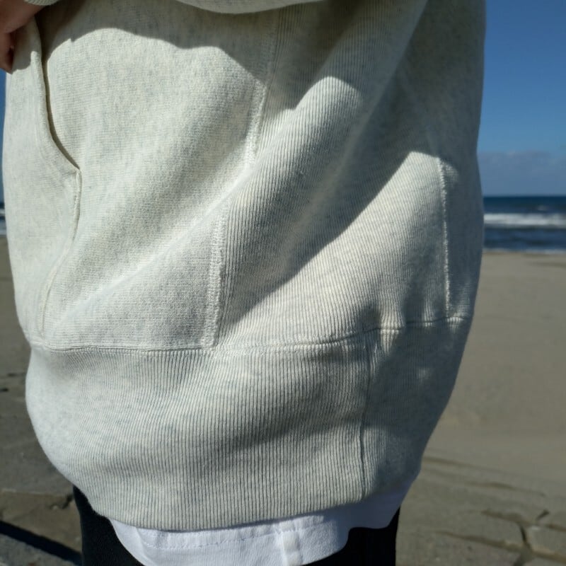 今回はダブルフェイススウェットなどに見られるポケット付きのクルースウェットをイメージしてオリジナルで製作。