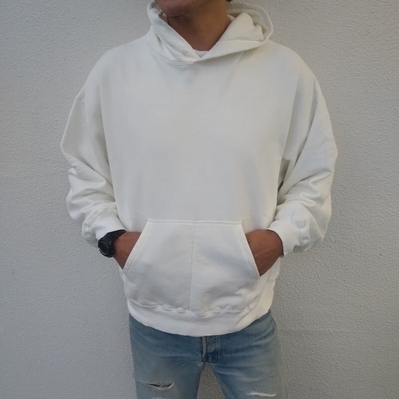 素材には14番の太い綿糸を使用し、従来のレミレリーフのスウェットよりも重厚感のある見た目ながら、驚くほど軽やかな着心地を実現したシリーズです。