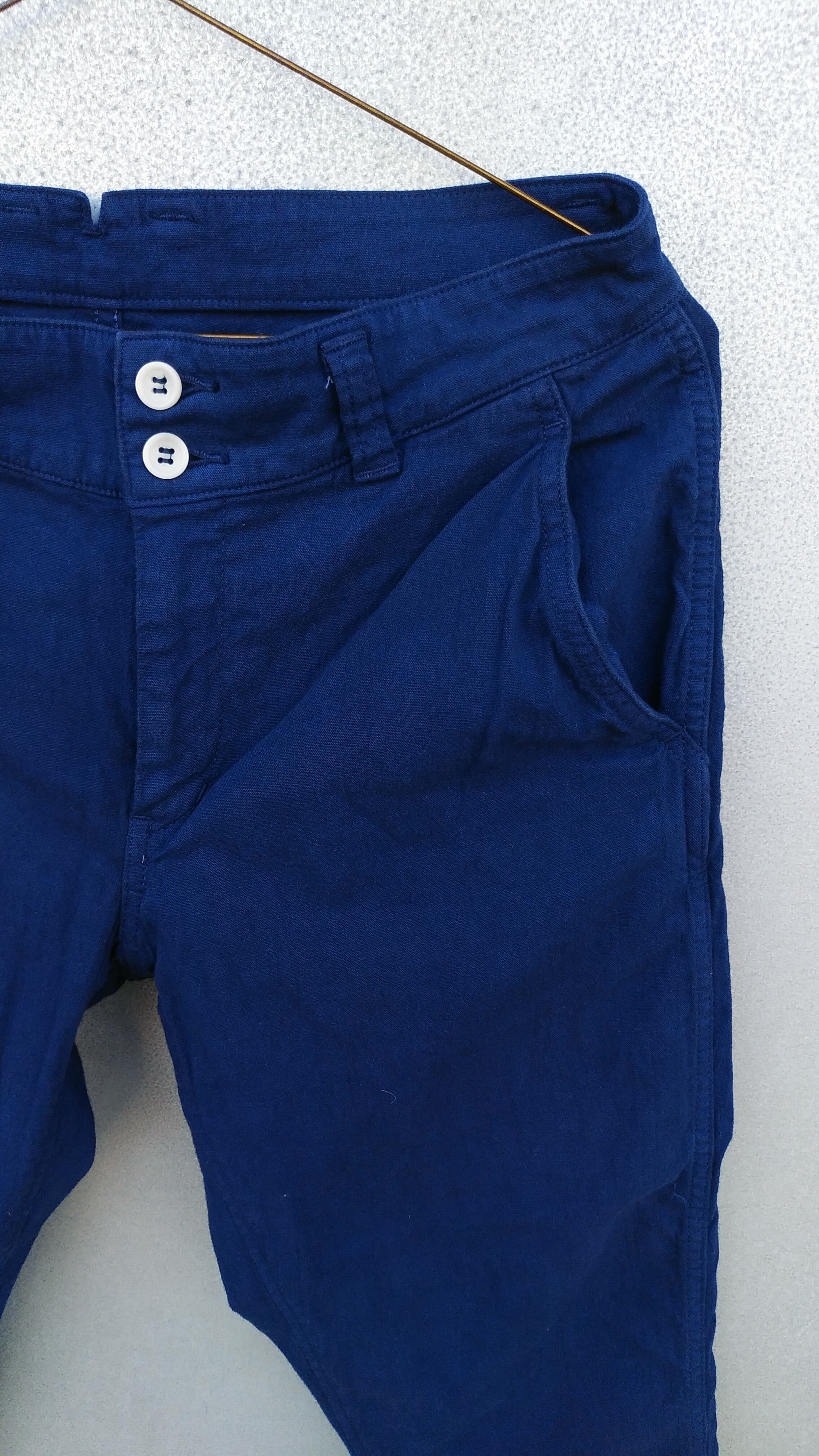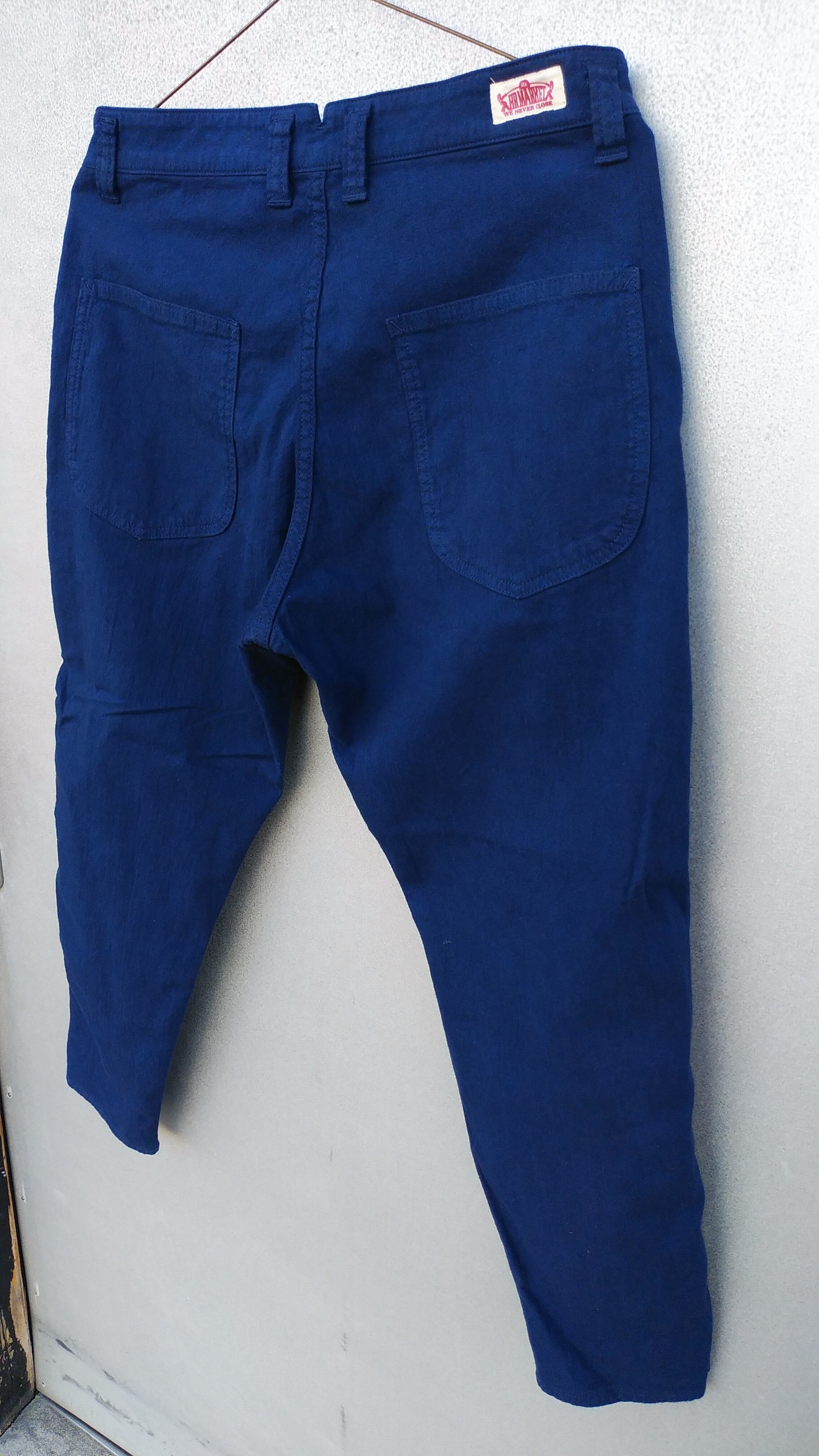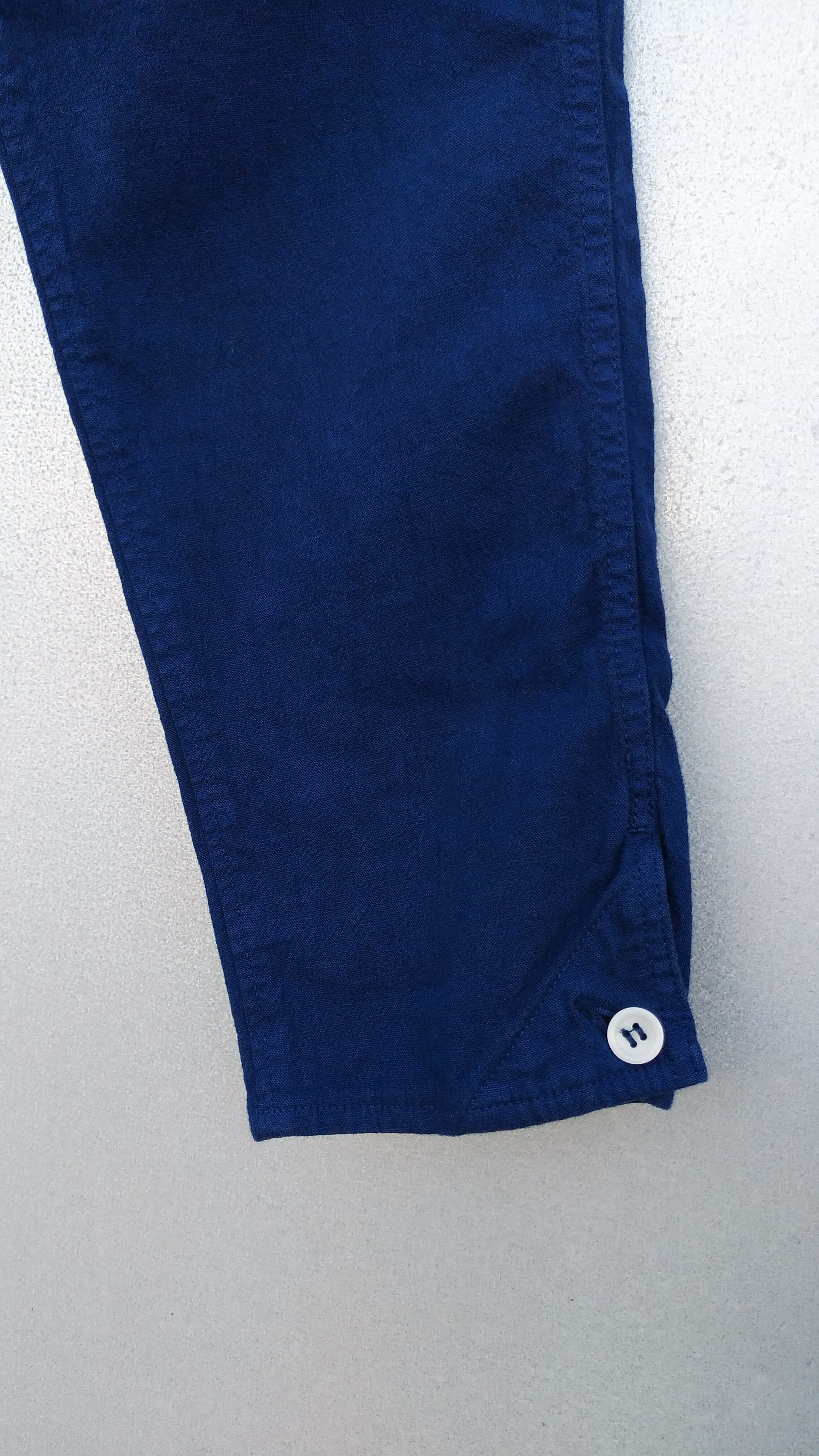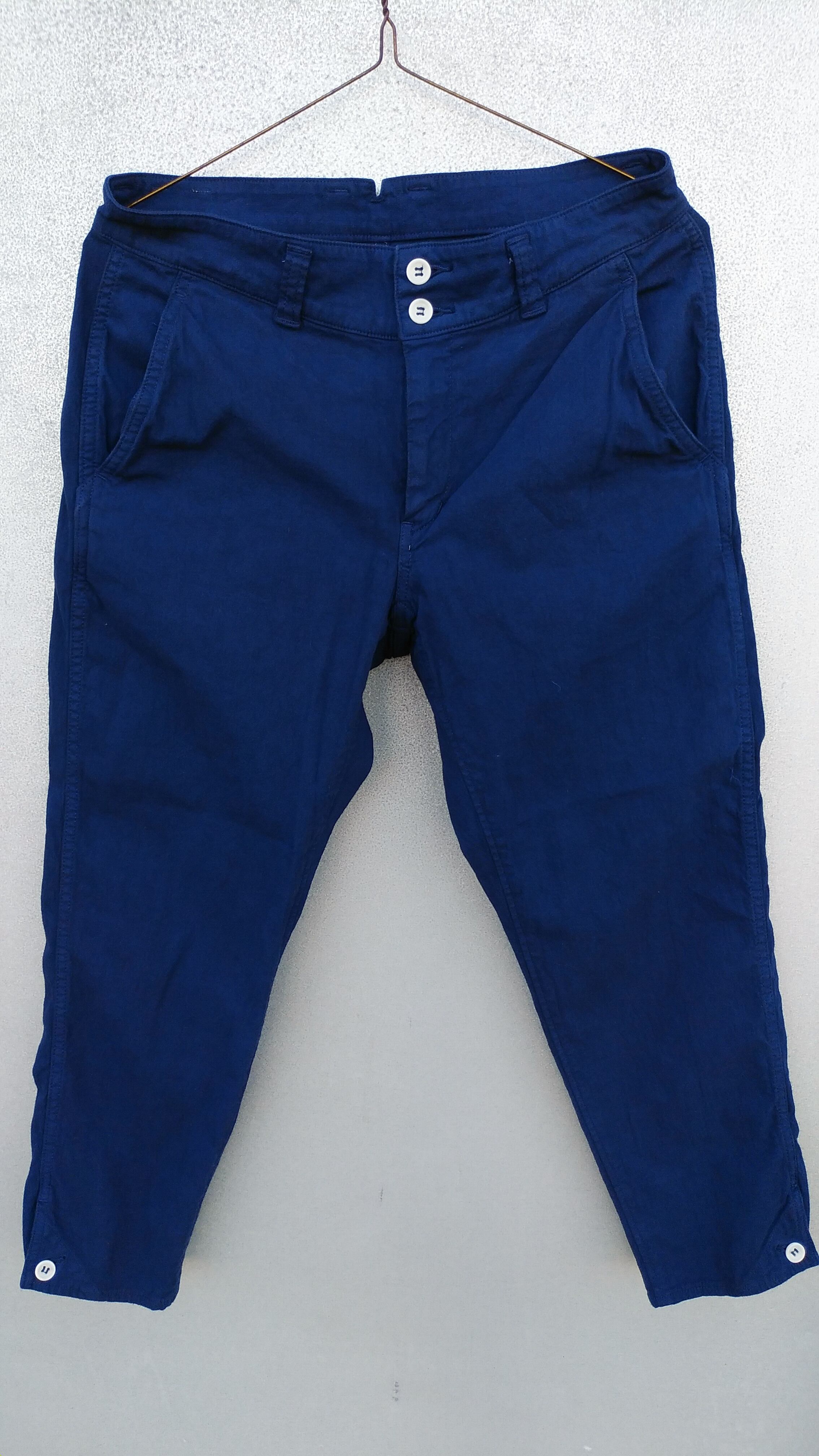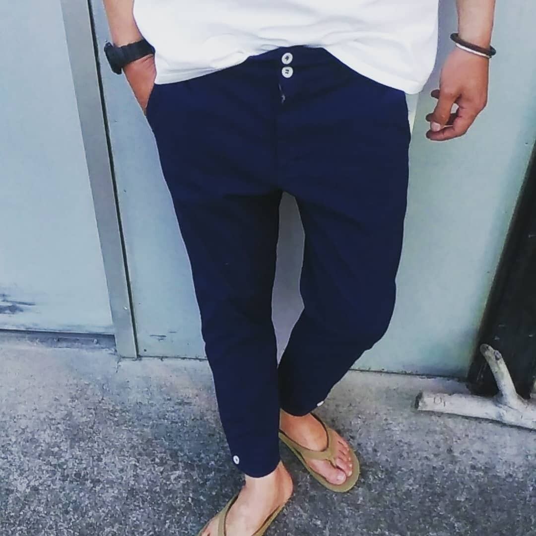 通気性と吸湿性に優れたコットンリネン素材を使用したクロップドパンツ。ストレッチ機能があり穿きやすさも持ち合わせています。ヴィンテージに見られるロングジョンのアンダーウエアをイメージしたデザインが特徴。ヒップにゆとりがあり膝から下がタイトなジョッパーズシルエットのデザインです。