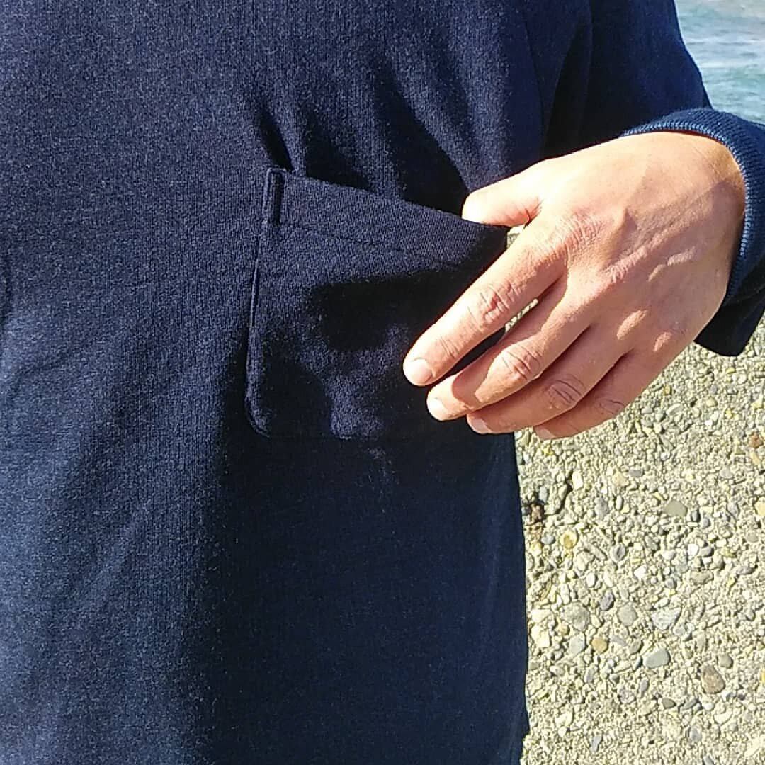 やや下気味に付いたポケットのデザインや