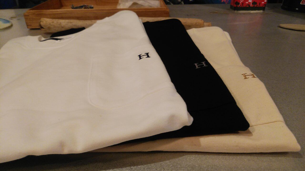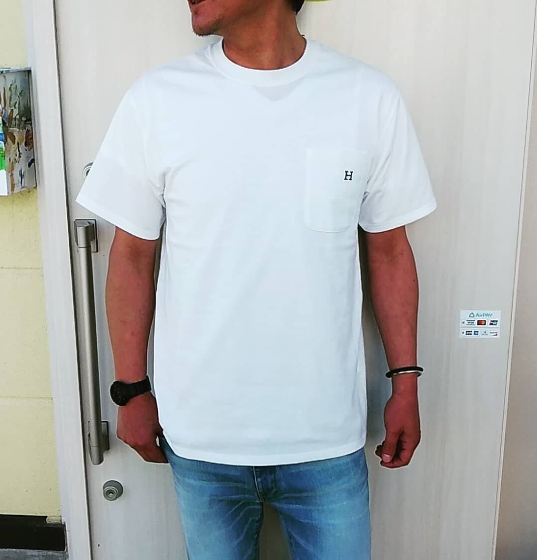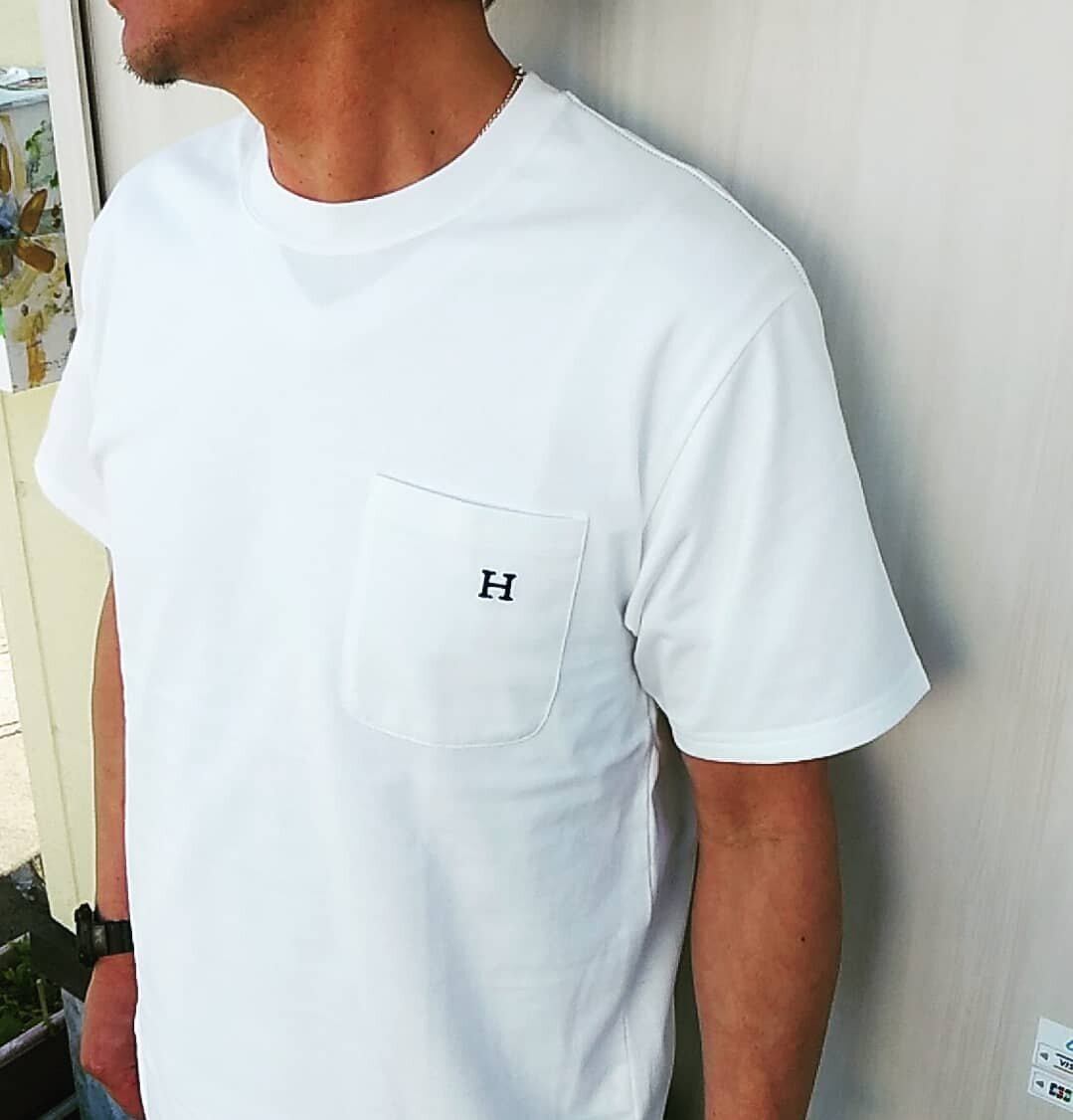 胸ポケット部分に、Hの刺繍が施された