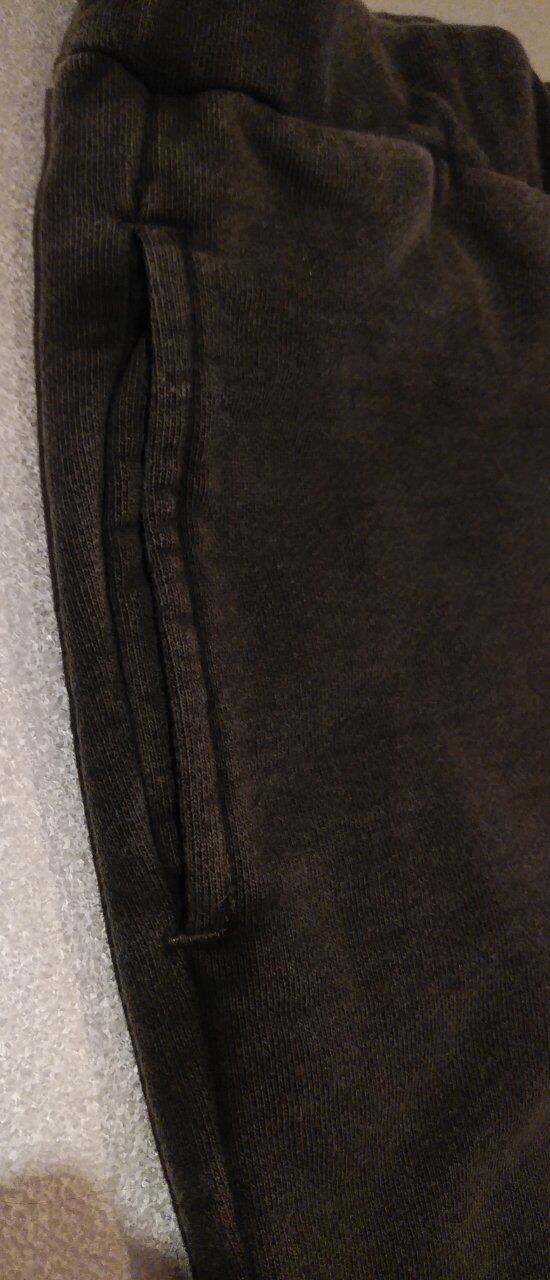 乾いた質感のUSAコットンを使用し、着古したようなピグメント加工を施した裏毛スウェットを使用。フロント2ポケット、バックは1ポケットです。