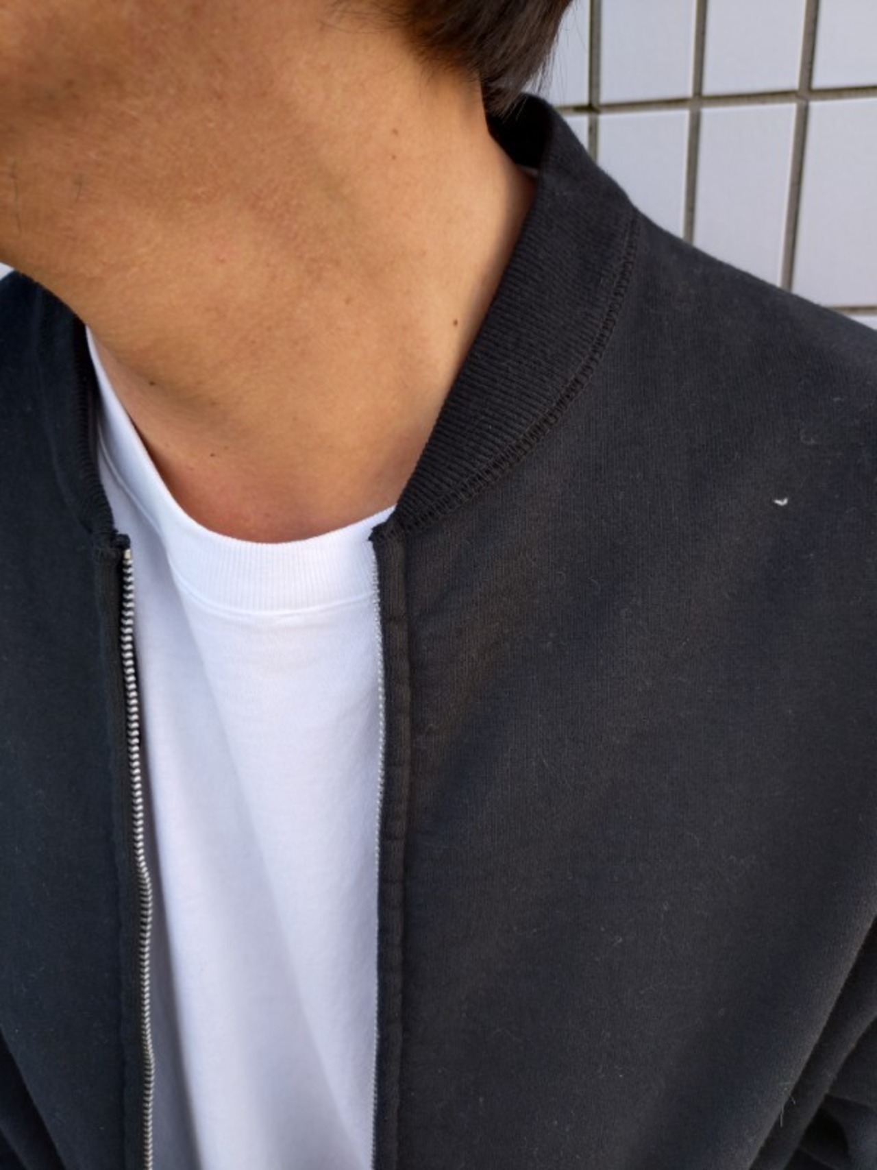 旧編み機を使用し、度詰めのような重厚な裏毛を使用したZIPスウェットブルゾン。